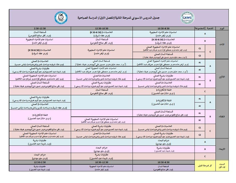 جدول المرحلة الثانيىة / قسم الفيزياء الطبية