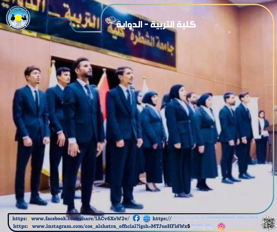نظم قسم اللغة الإنكليزية احتفالية متميزة، تضمن برنامجها إلقاء النشيد الوطني العراقي باللغة الإنكليزية، في لوحة معبّرة عكست الرصانة العلمية للطلبة وكفاءتهم اللغوية، وجسدت تلاحم الانتماء الوطني مع روح التميز الأكاديمي.