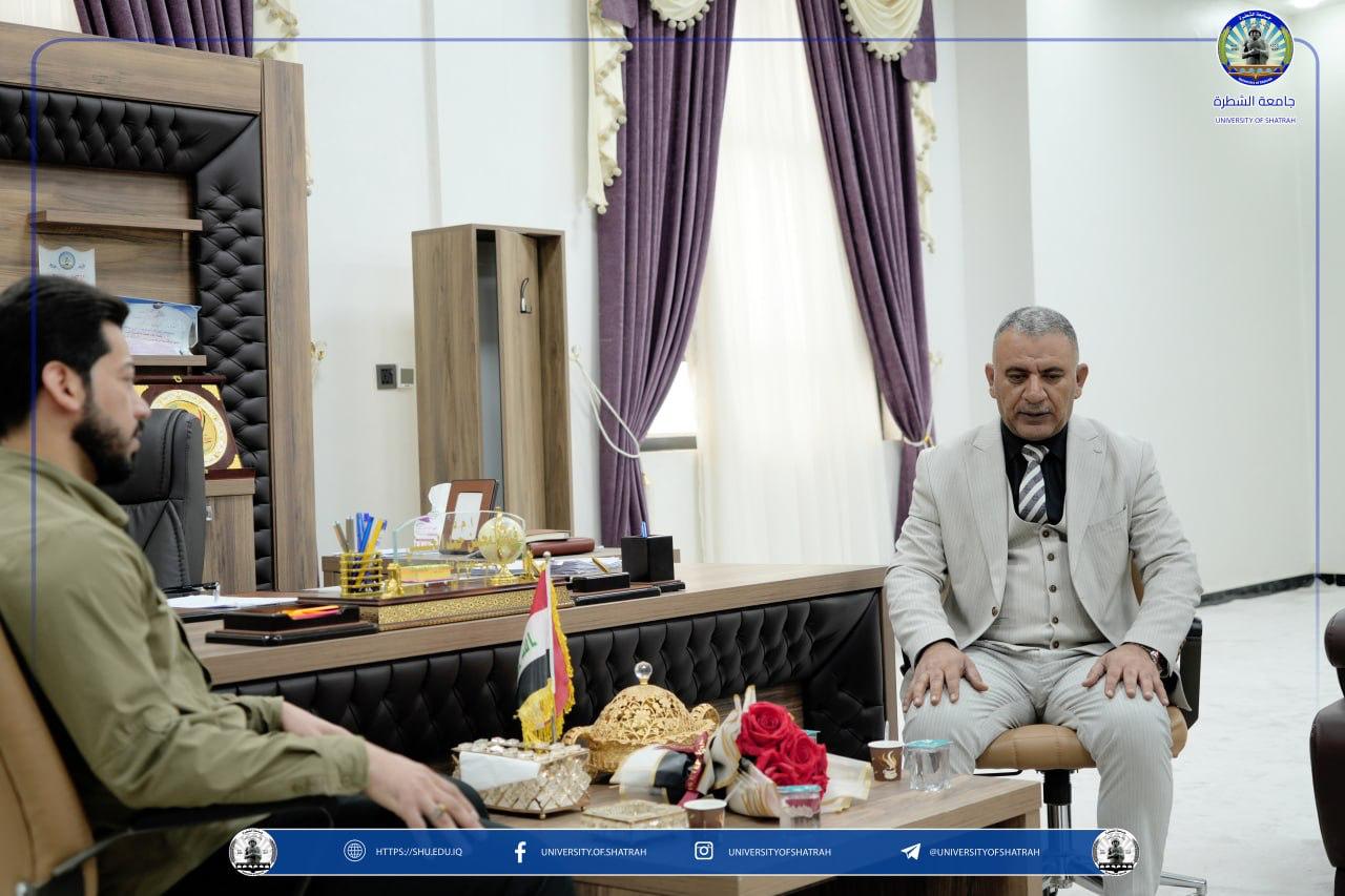 استقبل مساعد رئيس جامعة الشطرة للشؤون العلمية الأستاذ المساعد الدكتور فاضل محسن حمد، ممثل هيئة الحشد الشعبي في قضاء الشطرة وشمال محافظة ذي قار، وذلك في إطار تعزيز الشراكة المجتمعية وتوطيد التعاون بين الجانبين.