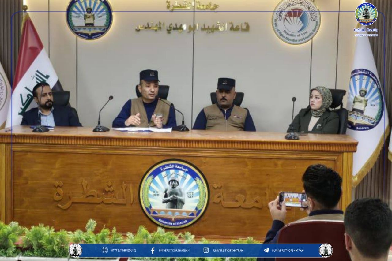 برعاية السيد رئيس جامعة الشطرة الأستاذ الدكتور باسم عبد الحسين جار الله المحترم، نظّمت قسم شؤون الاقسام الداخلية في الجامعة وبالتعاون مع قسم الشرطة المجتمعية في محافظة ذي قار، ندوة توعوية لطلبة الأقسام الداخلية بعنوان (أسباب الابتزاز الإلكتروني والآثار الاجتماعية والنفسية وطرق الوقاية منه)، اليوم الثلاثاء 16 كانون الأول 2025، على قاعة الشهيد ابي مهدي المهندس، حاضر فيها الباحث واثق مجد حيدر، ورئيس المصلحين حسام كريم جنون وأدار الندوة السيد معتز عزيز عبد الرضا والسيدة زهراء صادق هاشم.