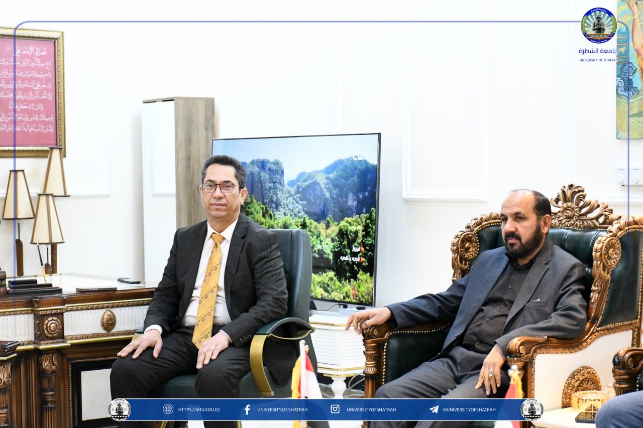 رئيس جامعة الشطرة يستقبل عضو مجلس محافظة ذي قار احمد فرحان الخفاجي لبحث سبل تطوير التعليم العالي