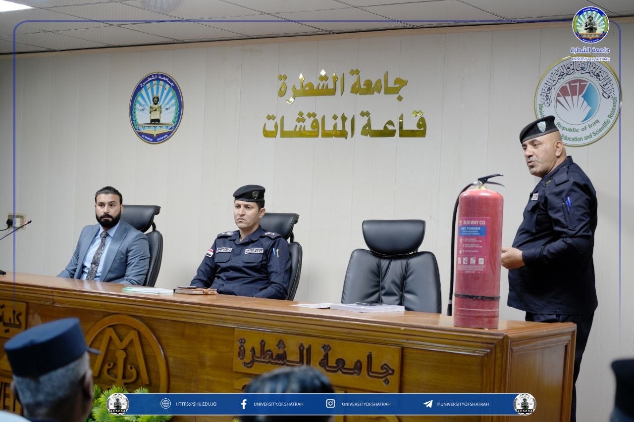برعاية رئيس جامعة الشطرة الأستاذ الدكتور باسم عبد الحسين الغزي نظم قسم شؤون الأقسام الداخلية / شعبة الباحث الاجتماعي، بالتعاون مع مركز التعليم المستمر، اليوم الأحد الموافق 12 نيسان 2026، ندوة توعوية بعنوان "أنواع الحرائق وطرق مكافحتها وأنواع مطافي الحريق وكيفية استخدامها".