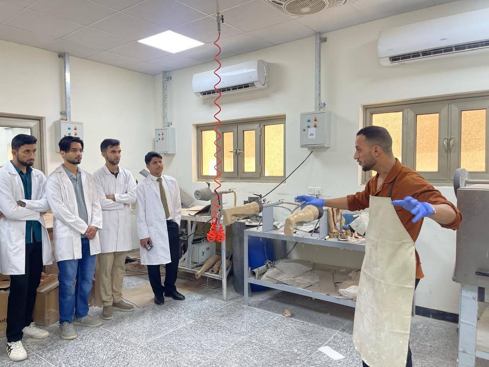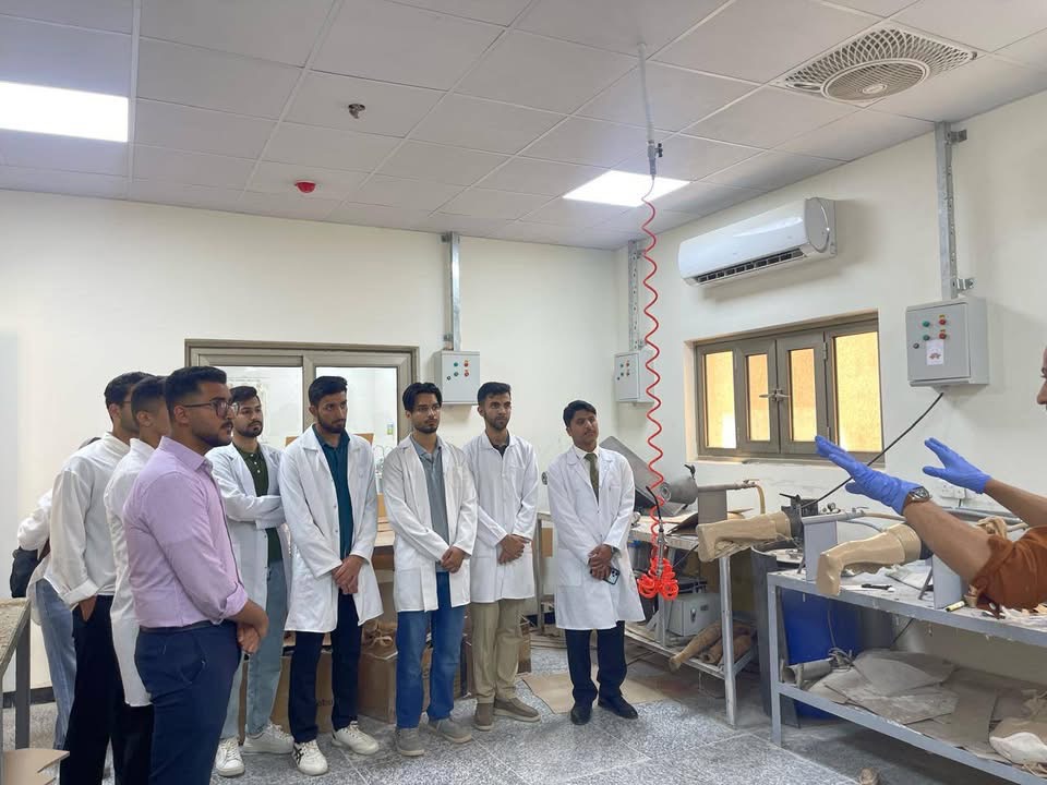 وكان في استقبال الوفد عدد من الكوادر الإدارية والطبية والفنية، حيث اطّلع الطلبة خلال جولة ميدانية على آليات تصنيع وتركيب الأطراف الصناعية إلى جانب التعرف على مراحل تأهيل المرضى والخدمات المقدمة لهم. كما شملت الزيارة جولة في أقسام المستشفى تم خلالها الاطلاع على طبيعة العمل السريري والأجهزة الطبية المستخدمة في تقديم الرعاية الصحية.